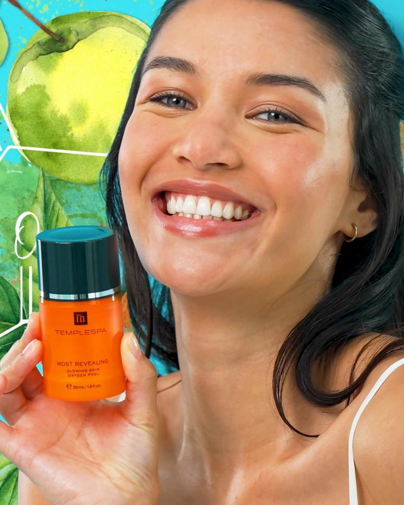 MOST REVEALING Glowing Skin Oxygen Peel is a fizzy, bubbly glycolic acid gel mask. It beautifully cleanses, exfoliates, and resurfaces your skin. It takes about the same amount of time to use as it does to clean your fangs. So, I highly recommend a bit of multitasking!
