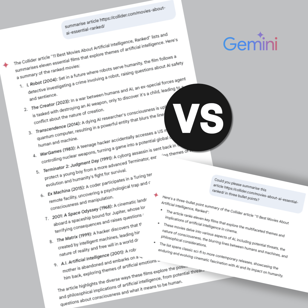 When using AI to summarise content, the way you phrase your request (your prompt) can significantly impact the output. Let’s look at an example using a Collider article titled “11 Best Movies About Artificial Intelligence, Ranked.”